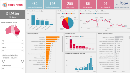 سِپلاي نِيشِن (Supply Nation) بزرگترین سازمان متنوعسازی تأمینکنندگان دراسترالیاست که بیش از ۵۷۰۰ کسبوکار بومی تأییدشده را به خریداران دولتی و شرکتی متصل میکند. از سال ۲۰۰۹ تاکنون، این سازمان بیش از ۱۴.۷ میلیارد دلار قرارداد خرید را ممکن کرده است و هر ۱ دلار هزینهشده حدود ۴.۴۱ دلار ارزش اجتماعی از طریق اشتغال، رفاه و تقویت جوامع ایجاد میکند. هدف داشبوردهای طراحی شده توسط برایت به صورت زیر بود: